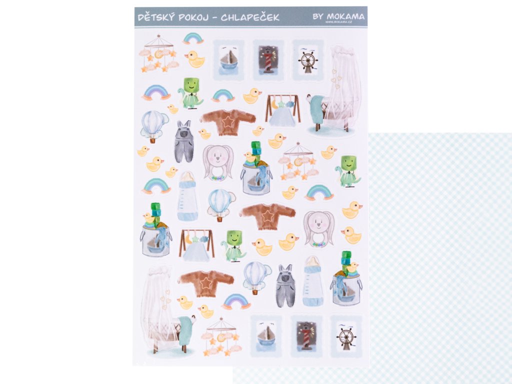 Dětské samolepky pro chlapečka v pastelově modré krásně dozdobí fotografie i pro ty nejmenší. Pomůžou zvýraznit důležité okamžiky ze života miminka zachycené...