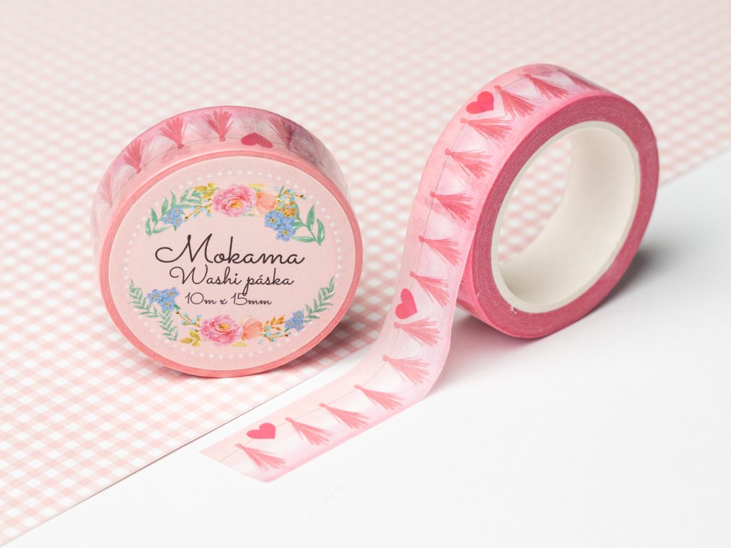 Pastelově růžová washi páska pro zamilované na ozdobení fotografií, památečních předmětů, fotoknih, deníku a třeba i přáníček na Valentýna, k narozeninám a dalším...